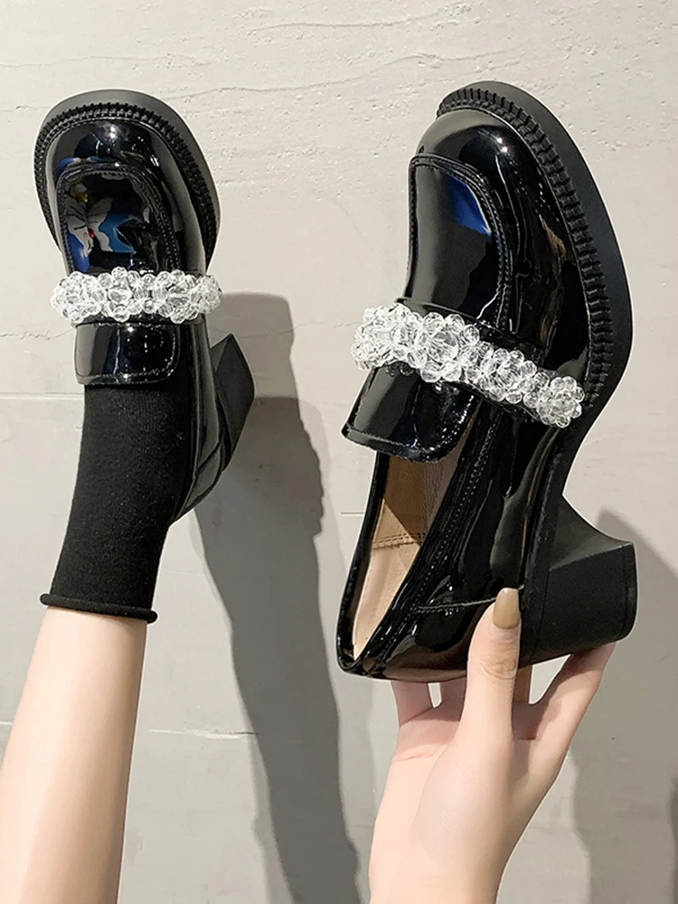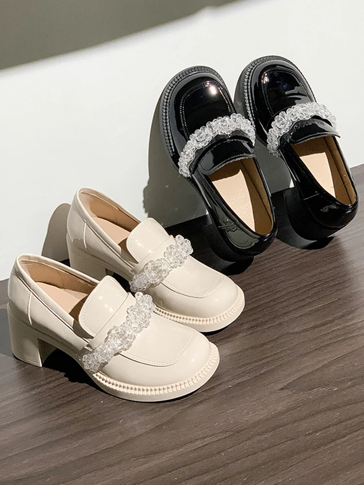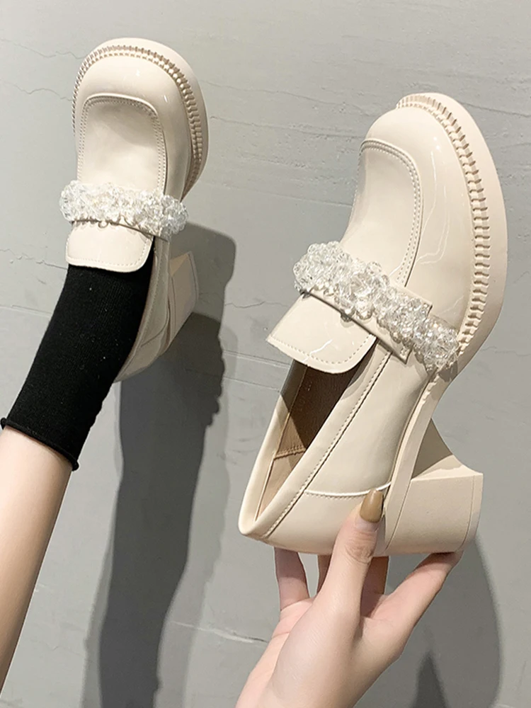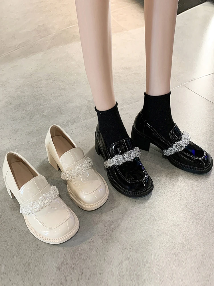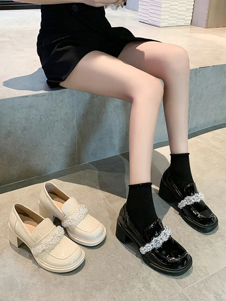 British Style Slip On Shoes For Women White Sneakers Clogs Platform Loafers With Fur Square Toe Oxfords Female Footwear Preppy S