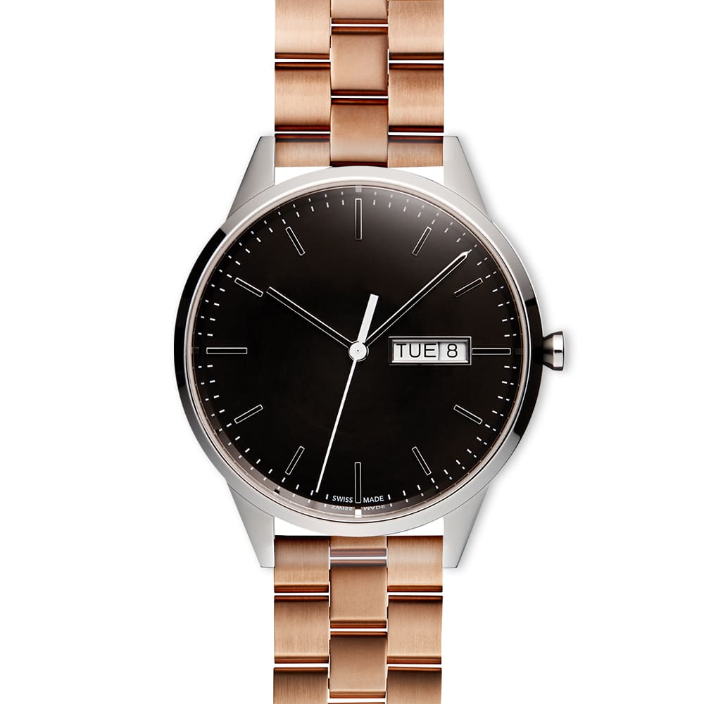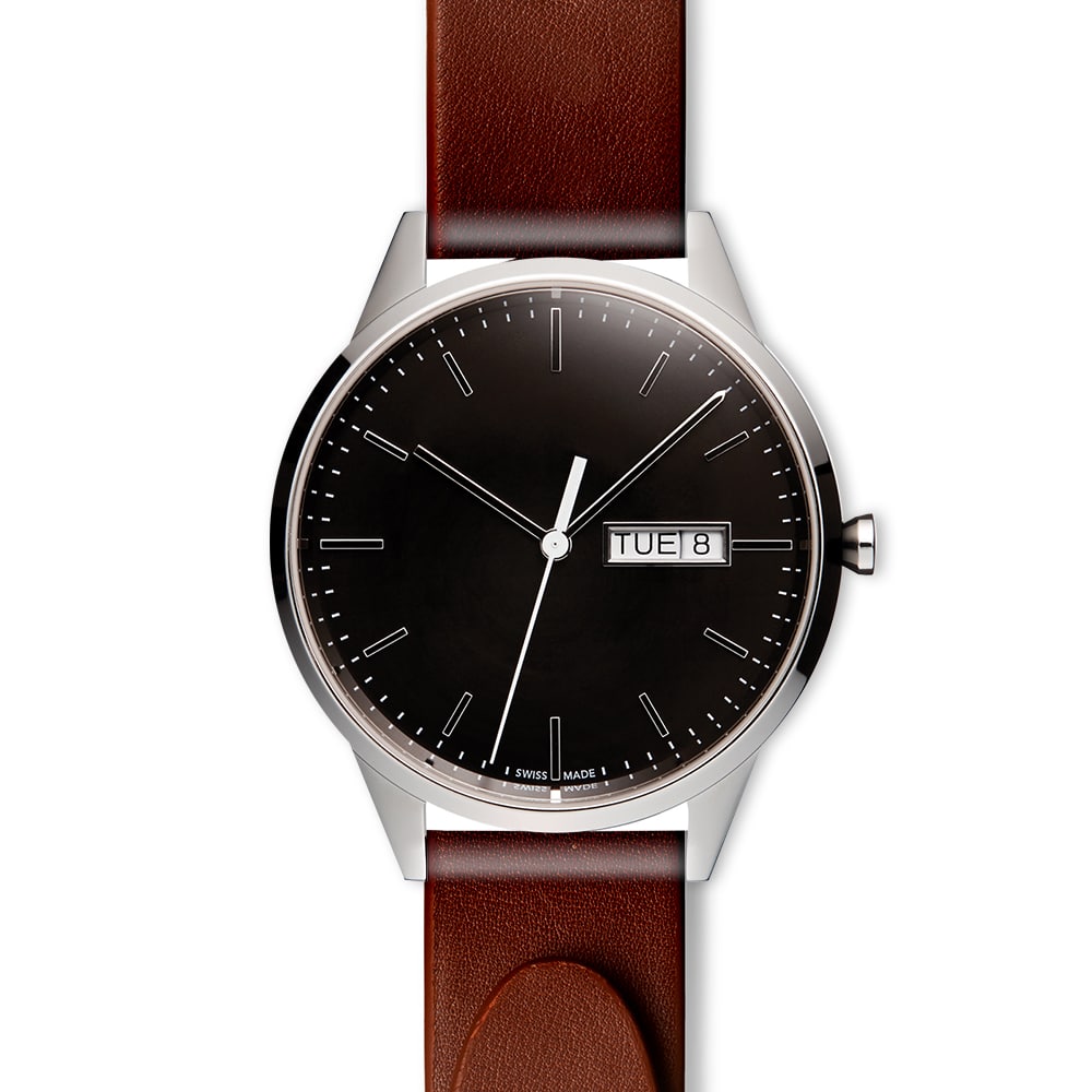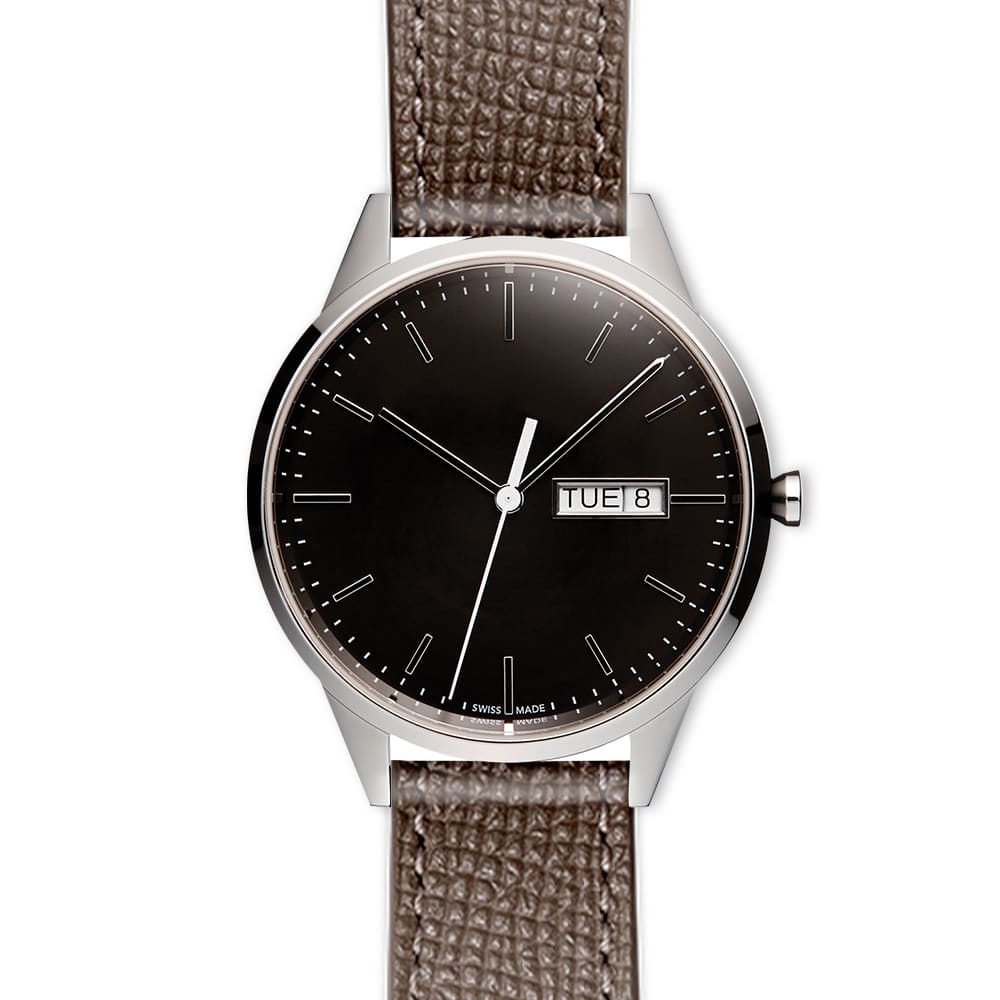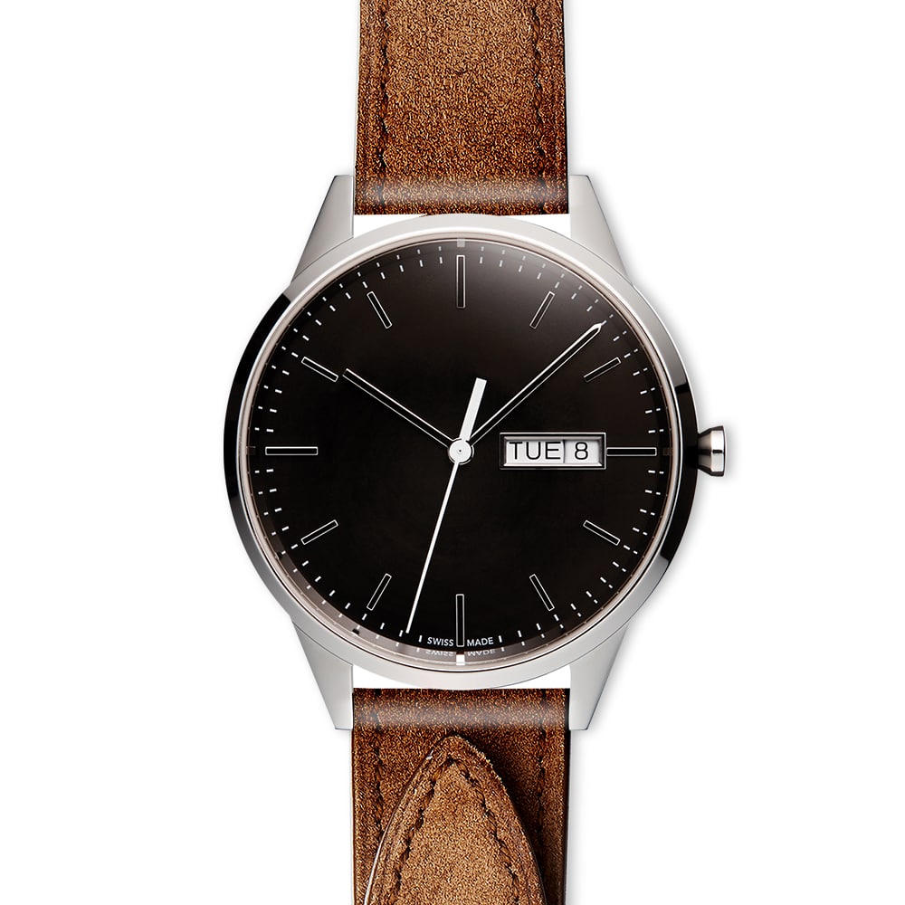 - Movement: Swiss made ETA 955.122, 7-jewel 3 hand day date movement with -10/+20 secs accuracy per month.