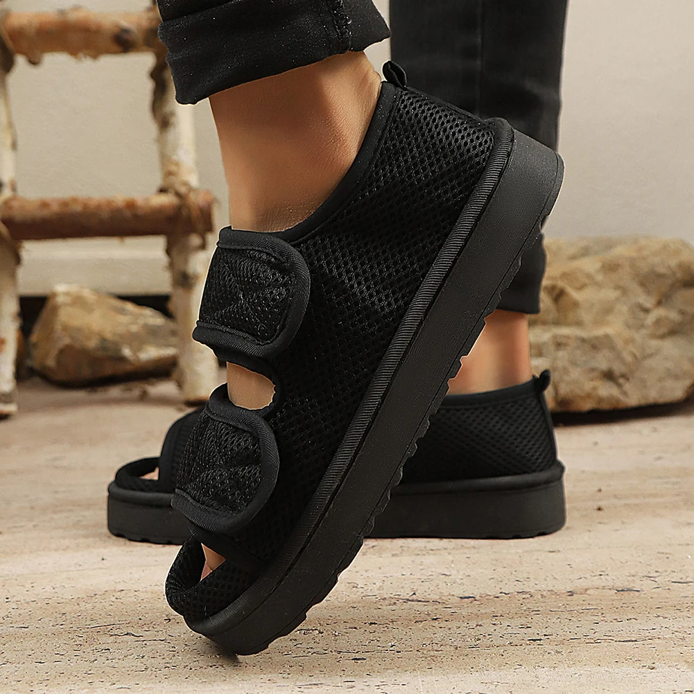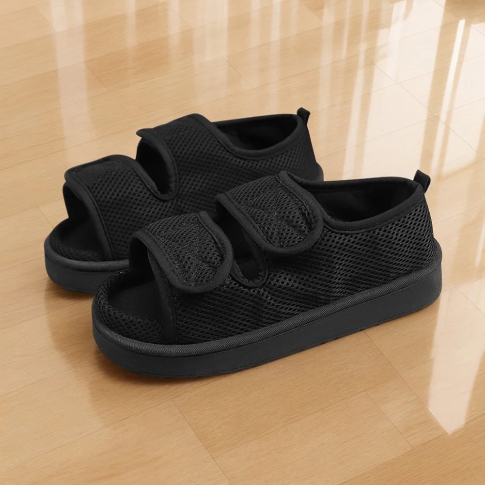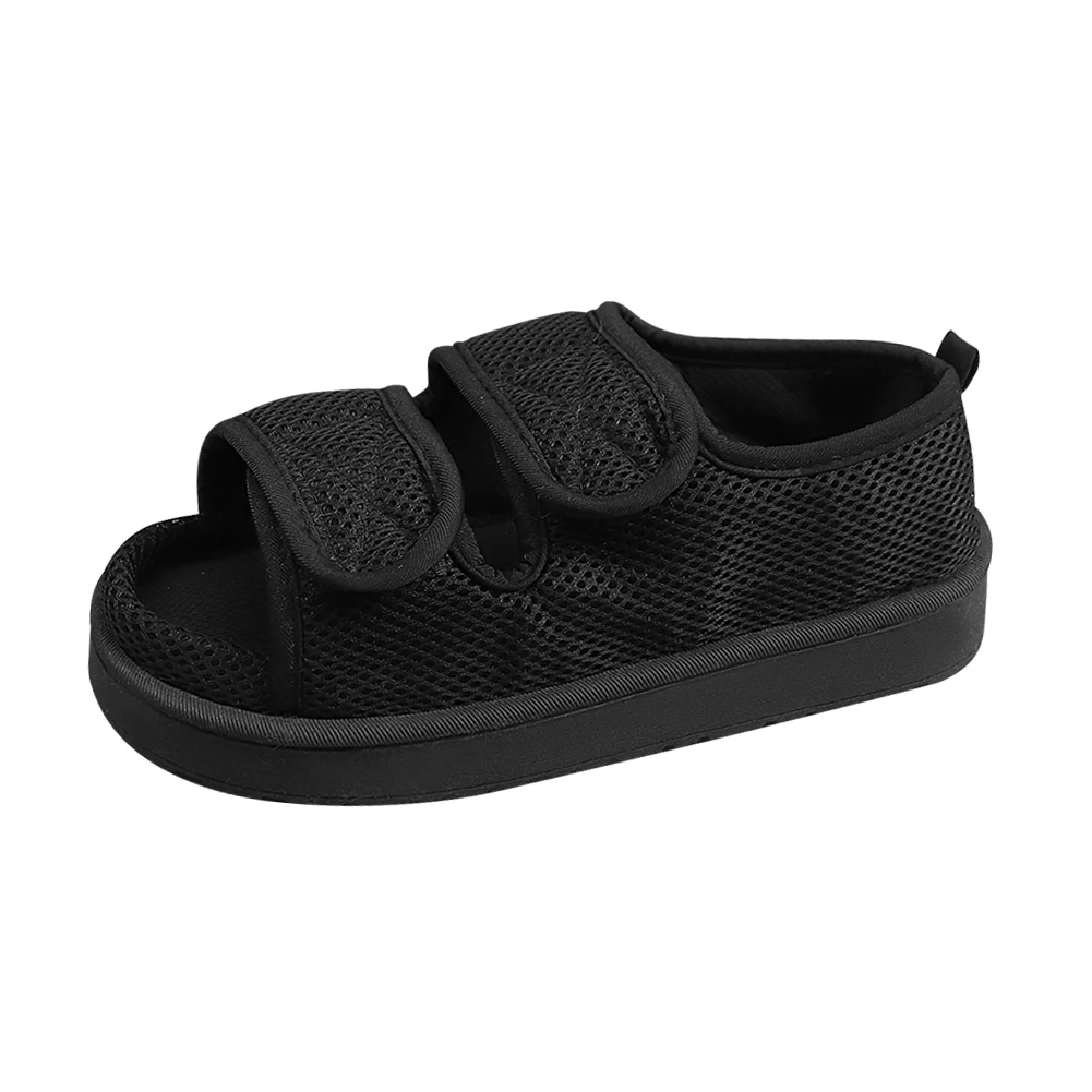 Hook and Loop Fastener Shoes Adjustable Edema House Shoes Breathable Wide Open Toe Sandals Non-Slip for Indoor Outdoor Features: 1. Adjustable Wide Strap Design: Featuring a widened hook-and-loop strap, these diabetic shoes are ideal for those with wide feet, swollen feet, or foot deformities. The adjustable design provides a comfortable fit, ensuring comfort and ease for problem feet. Specification: Material: Mesh