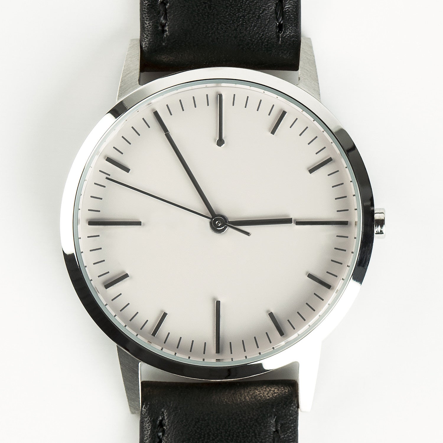 The limited edition 30mm silver and black women's watch combines the classic detailing of vintage watches with a modern minimalist finish.